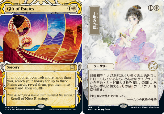 Original by Justin Alexis; Japanese alternate-art by Yaomojun (茶魔魔).